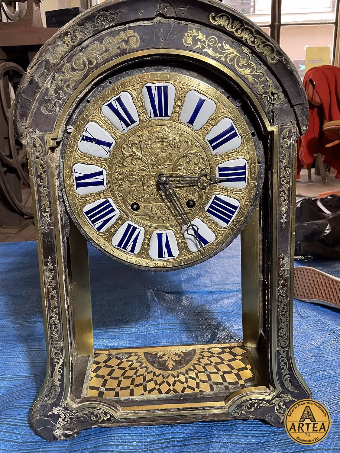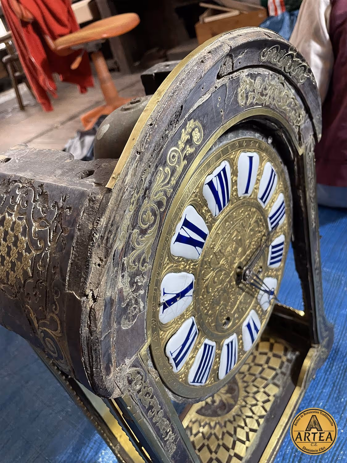 - Prise d'empreintes et réalisation de greffes de laiton et écaille pour combler les manques.